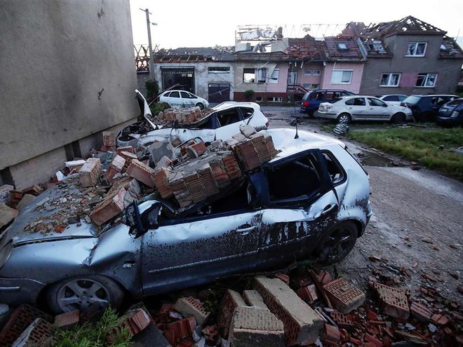 Tại làng Moravska Nova Ves, Cộng hòa Czech, nhiều ngôi nhà và xe cộ cũng đã bị phá hủy bởi cơn lốc xoáy ngày 25/6. Ảnh: Reuters.