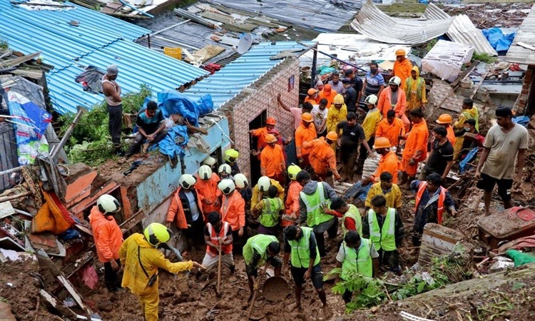 Ít nhất 25 người thiệt mạng và nhiều người khác bị thương do lở đất và đổ sập nhà vì mưa lũ ở Mumbai, Ấn Độ, ngày 18/7.