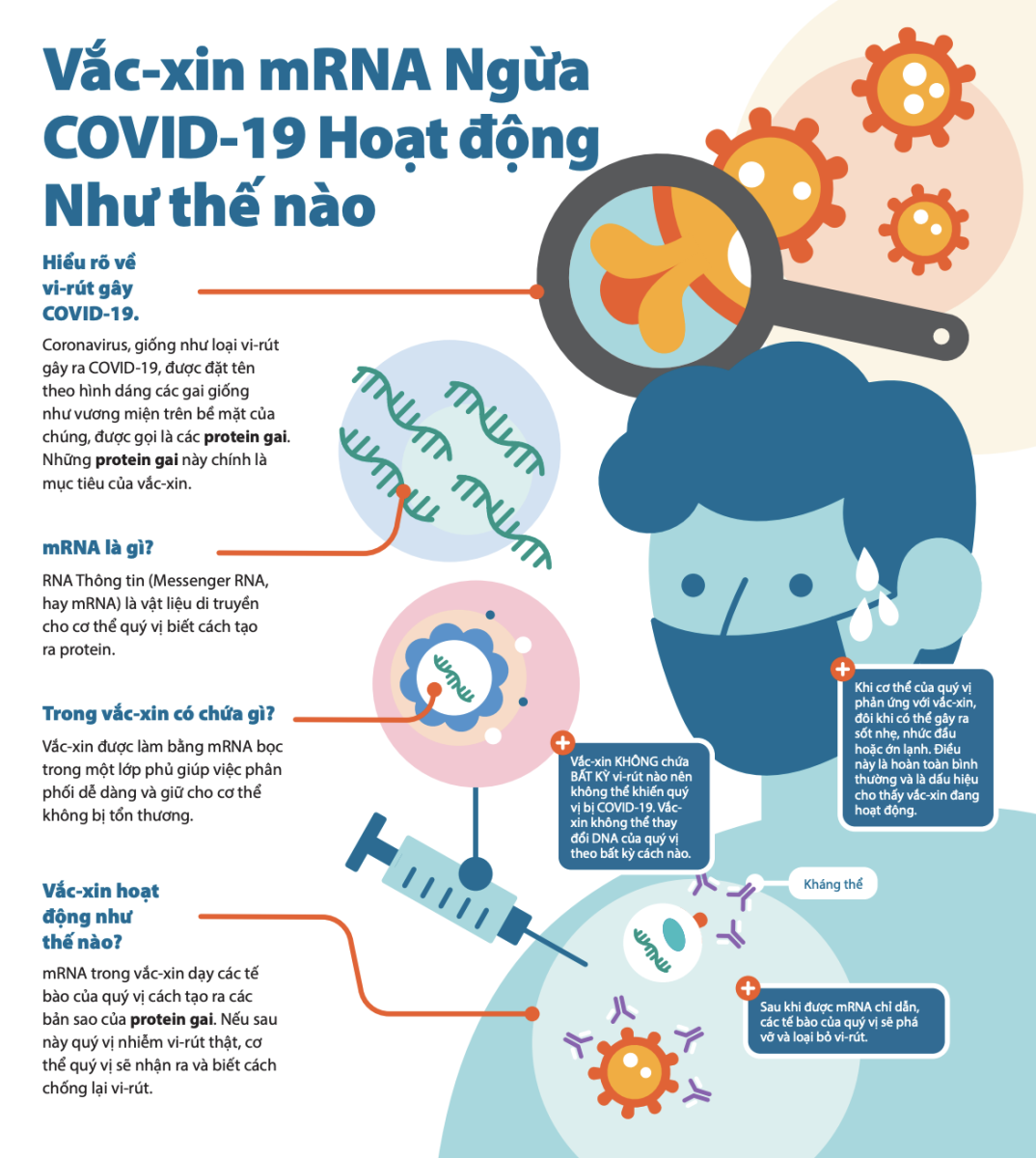 Đồ hoạ về hoạt động của vaccine mRNA. Nguồn: CDC Hoa Kỳ