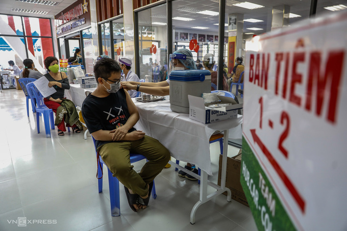 Người dân TP HCM tiêm vaccine Covid-19 hồi tháng 6. Ảnh: Hữu Khoa.