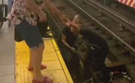 Khoảnh khắc một anh hùng tàu điện ngầm nhảy xuống đường ray để cứu một người đàn ông ngồi trên xe lăn bị ngã khỏi sân ga khiến người xem đi từ cảm giác bàng hoàng đến phấn khích.