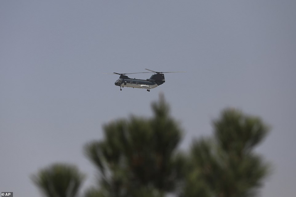 Trực thăng hai cánh quạt Chinook của không quân Mỹ liên tục hạ cánh xuống Đại sứ quán Mỹ để đưa các nhân viên ngoại giao tới sân bay quốc tế Kabul.