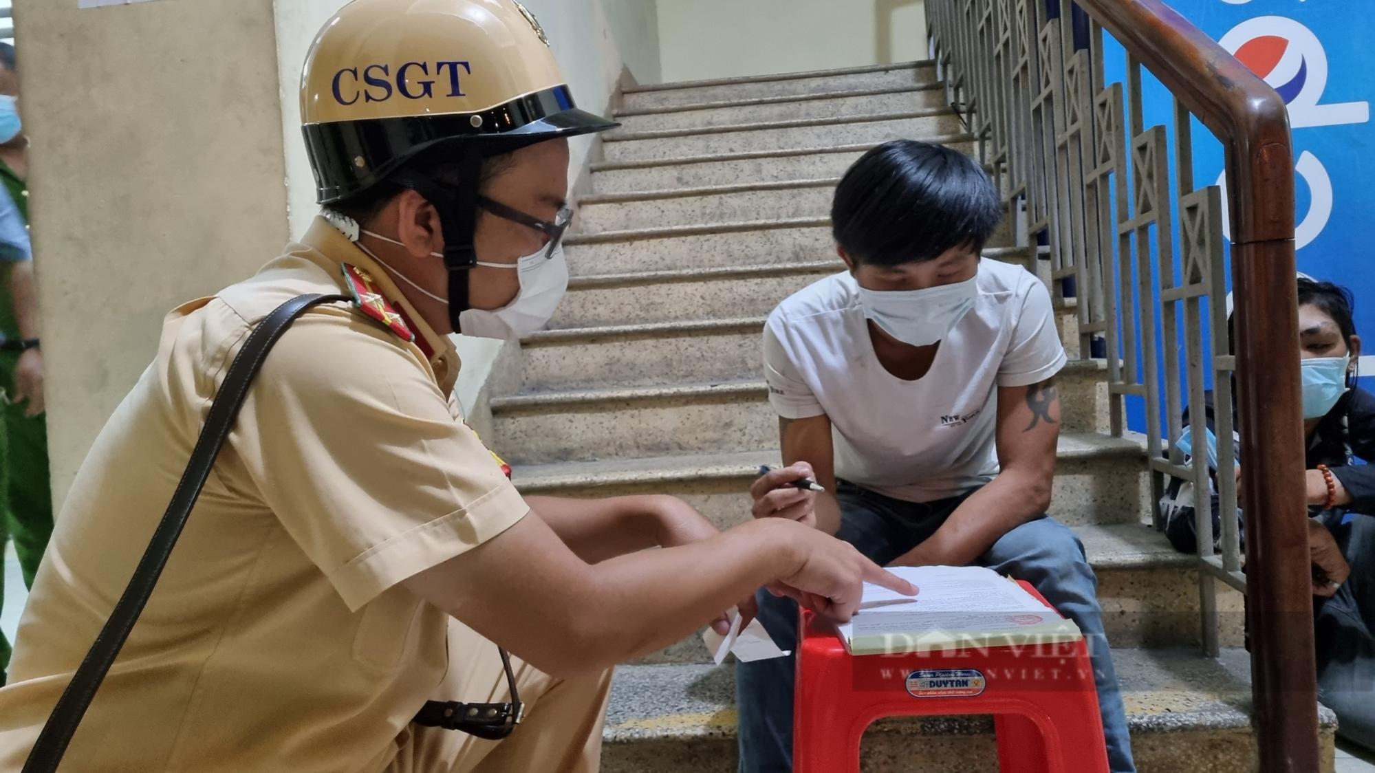 CSGT Công an TP.Biên Hòa (Đồng Nai) lập biên bản với đối tượng Vũ Thành Nam. Ảnh: Nha Mẫn
