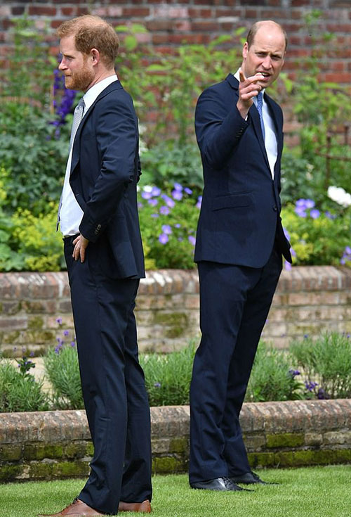 Harry và William trong lễ khánh thành tượng Diana ở Điện Kensington hôm 1/7. Ảnh: AFP.