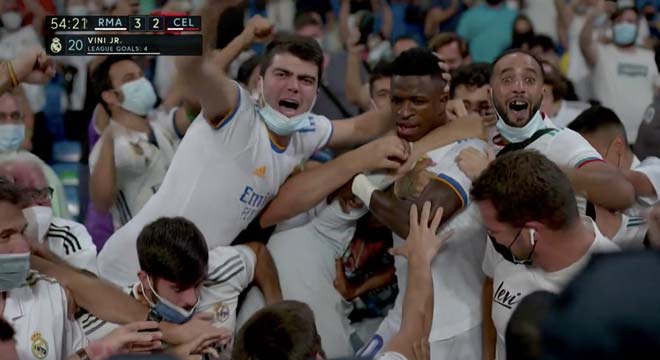 Báo chí Tây Ban Nha không hài lòng với cách ăn mừng bàn thắng của tiền đạo Vinícius Júnior bên phía Real Madrid ở trận gặp Celta Vigo mới đây.Ở trận đầu tiên trở lại Bernabeu sau gần 18 tháng, Real Madrid giành chiến thắng với tỉ số 5-2 trước Celta Vigo. Ba cầu thủ ghi bàn cho “Los Blancos” ở trận đấu thuộc vòng 4 La Liga rạng sáng nay là Benzema (hat-trick), Vinícius Júnior và tân binh Eduardo Camavinga.