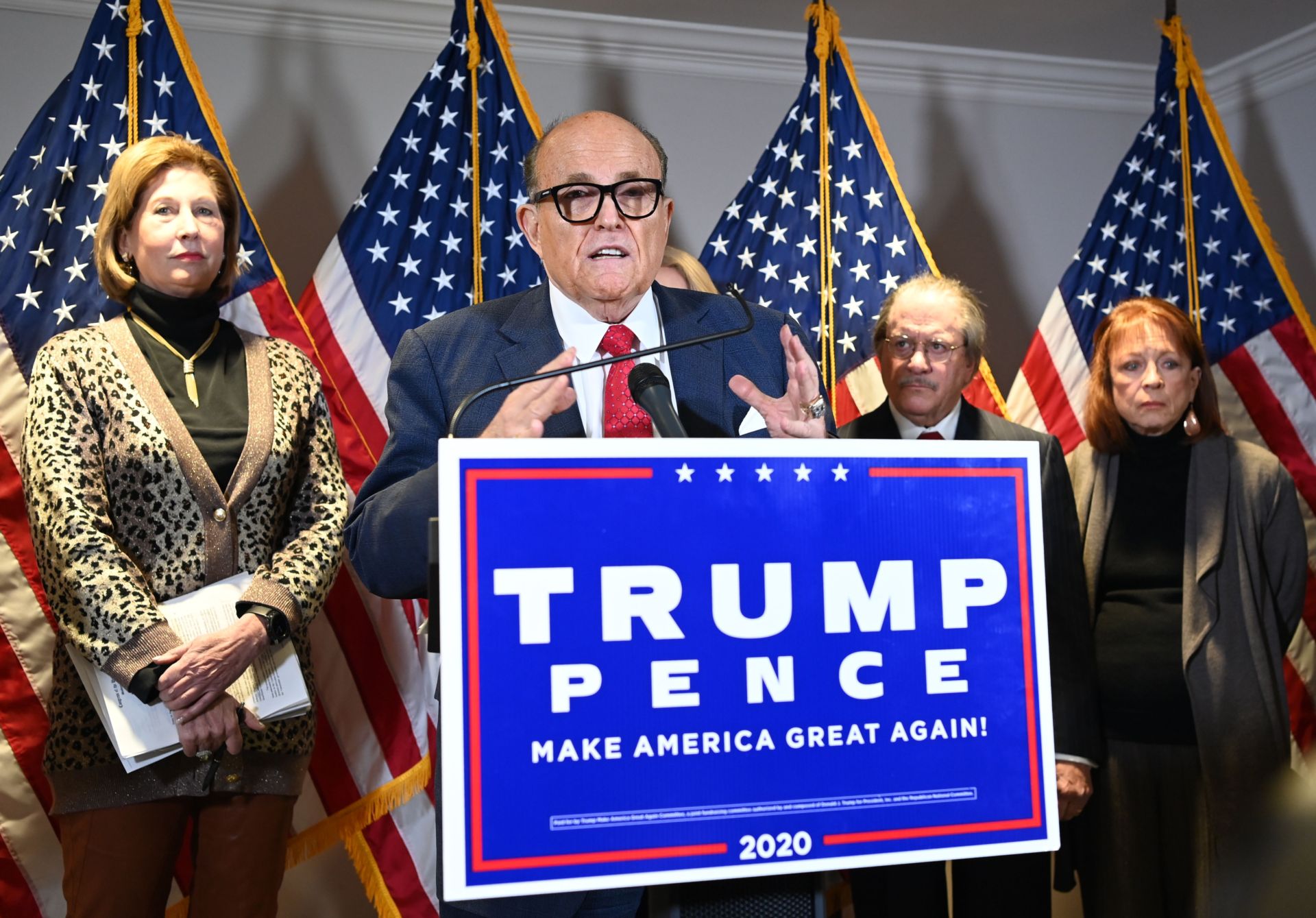 Trên thực tế, một tuần sau khi ban tranh cử Trump đưa ra thông báo trên, ông Giuliani, cựu luật sư riêng của nhà tỷ phú, cùng bà Sydney Powell, một luật sư cực hữu, vẫn tung ra cuộc họp báo được truyền hình từ trụ sở của Uỷ Ban Cộng Hòa Toàn Quốc để đưa ra những tố cáo vô căn cứ, bịa đặt về chuyện có gian lận bầu cử trên diện rộng và thuyết âm mưu về cấu kết của công ty Dominion với lãnh tụ Hugo Chavez đã quá cố của Venezuela.