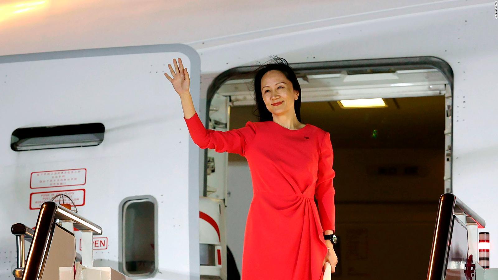 Bà Mạnh Vãn Chu trở lại Trung Quốc hôm 25/9. (Ảnh: CNN)