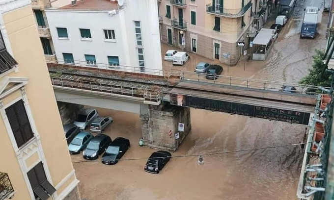 Ngập lụt nghiêm trọng ở vùng Liguria, Italy, hôm 4/10. Ảnh: Facebook/Giovanni Toti.