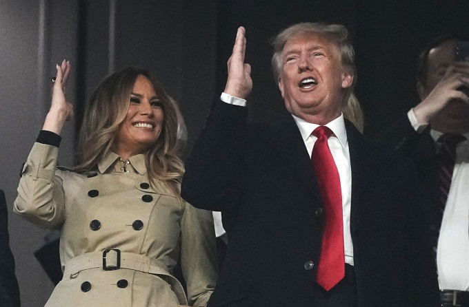 Cựu tổng thống Mỹ Donald Trump đứng cạnh vợ là Melania khi ông giao lưu với người hâm mộ trước trận đấu giữa Atlanta Braves và Houston Astros trong khuôn khổ giải World Series từ một khu vực riêng trên khán đài hôm 30/10. Một số đồng minh chính trị cũng tới xem cùng cựu tổng thống, gồm ứng viên thượng nghị sĩ Herschel Walker.