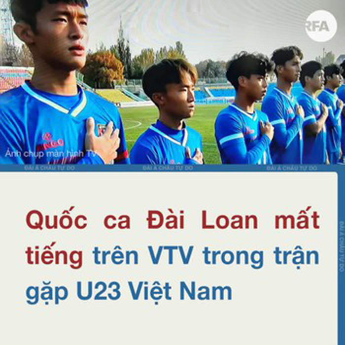 Vụ VTV cắt tiếng quốc ca Đài Loan trong trân đấu U23 diễn ra hôm 27.10 tại Kirgyzstan có vẻ đã chìm xuồng, với tôi thì không. Tôi đã xem kỹ video để xác định sự việc và vô cùng tức giận. [1] (phút 43’18”).