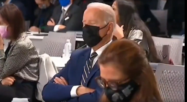 Tổng thống Mỹ Joe Biden nhắm mắt trong phiên khai mạc hội nghị thượng đỉnh khí hậu COP26 ở Glasgow, Scotland hôm 1/11. Video: NY Post.