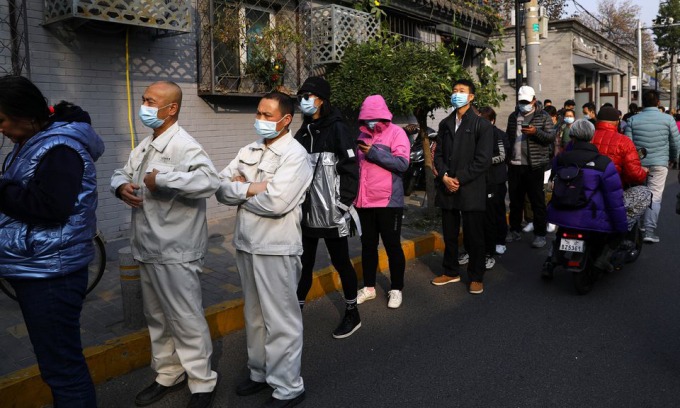 Người dân xếp hàng tại một điểm tiêm chủng Covid-19 ở Bắc Kinh, Trung Quốc, hôm 29/10. Ảnh: Reuters.