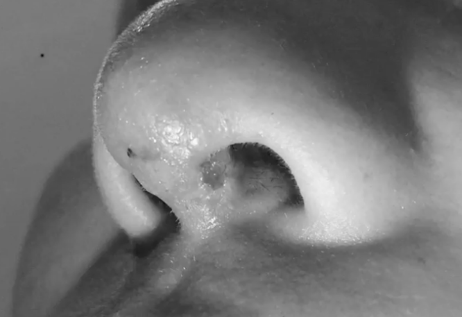 Biến chứng sưng đỏ mũi, chảy dịch, sau phẫu thuật nâng mũi. Ảnh: Nhân vật cung cấp