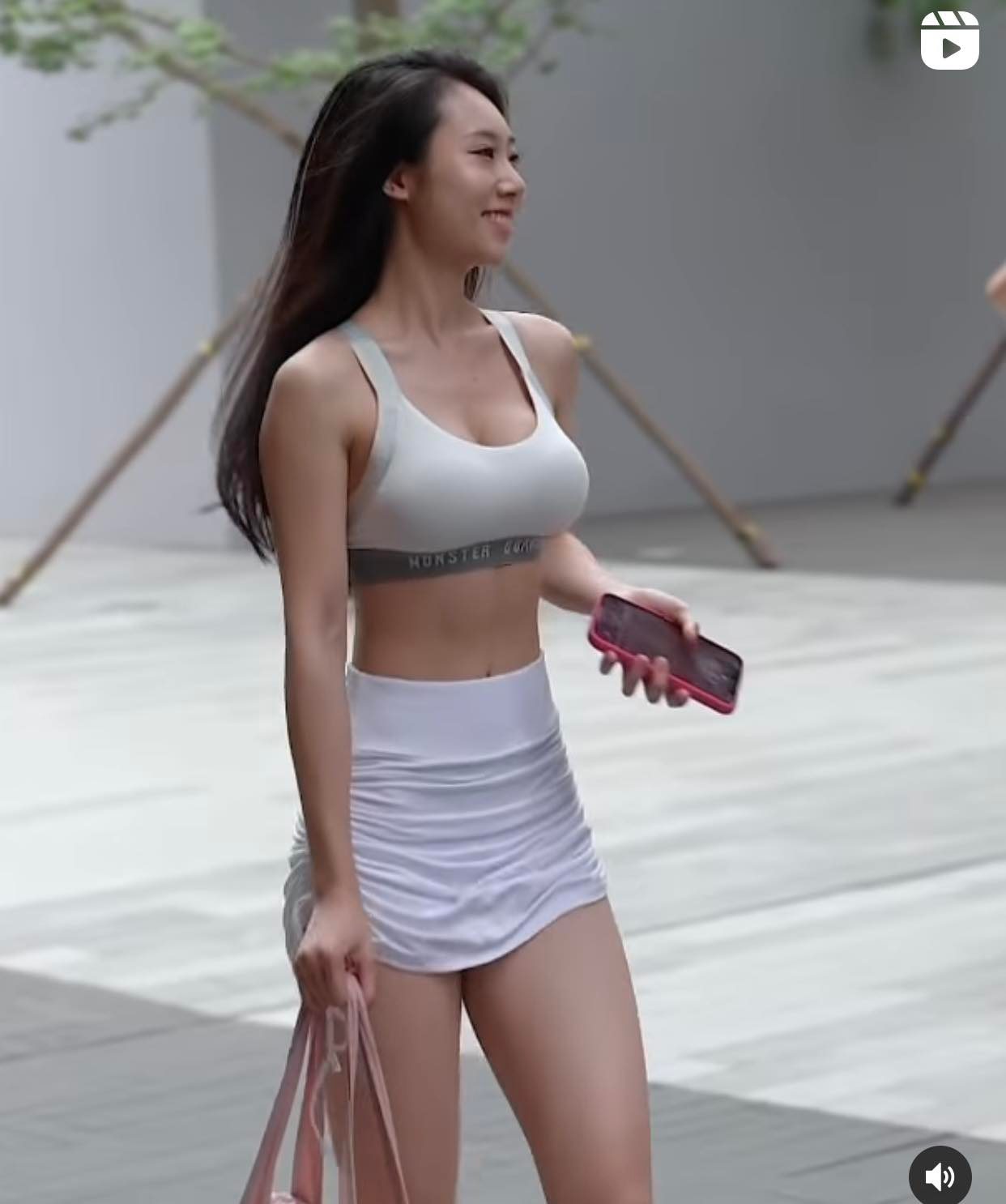 Mới đây, một hot girl phòng gym lại thu hút mọi ánh nhìn của người đi đường nhờ mix chân váy rút dây cao ngang hông theo phong cách "khác lạ".
