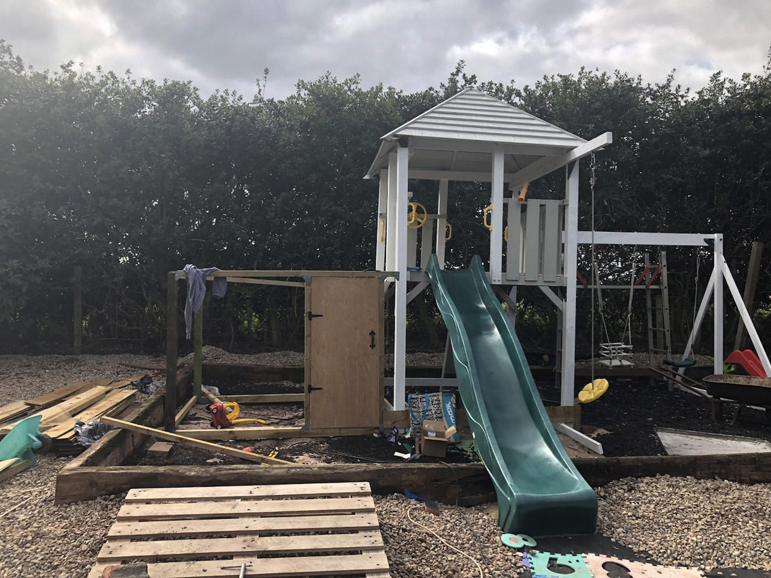 Gemma tiết lộ, cô đã chi khoảng 150 bảng cho một bộ cầu trượt và xích đu từ thị trường Facebook và 200 bảng cho khung gỗ từ cửa hàng vật liệu xây dựng Homebase.