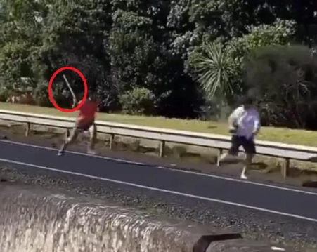 Chủ nhân chiếc xe Nissan bị mất cản sau – có vẻ là người đàn ông áo cam đã tức giận xuống đường dùng mảnh vỡ của ô tô làm vũ khí đuổi theo tài xế xe Toyota nhằm trả đũa.
