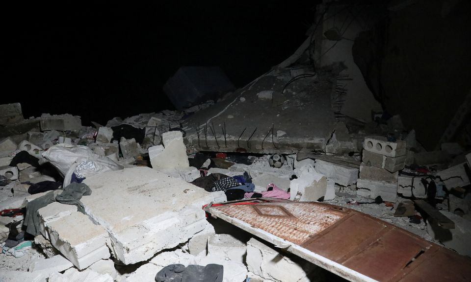 Đống đổ nát sau khi lực lượng Mỹ thực hiện nhiệm vụ chống khủng bố ở Atmeh, Syria, hôm nay. Ảnh: Reuters.