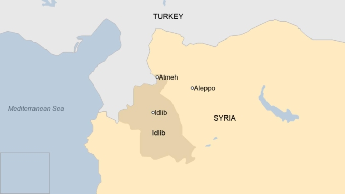 Vị trí thị trấn Atmeh tại Syria, nơi diễn ra cuộc đột kích thủ lĩnh IS al-Quraishi hôm nay. Đồ họa: BBC.