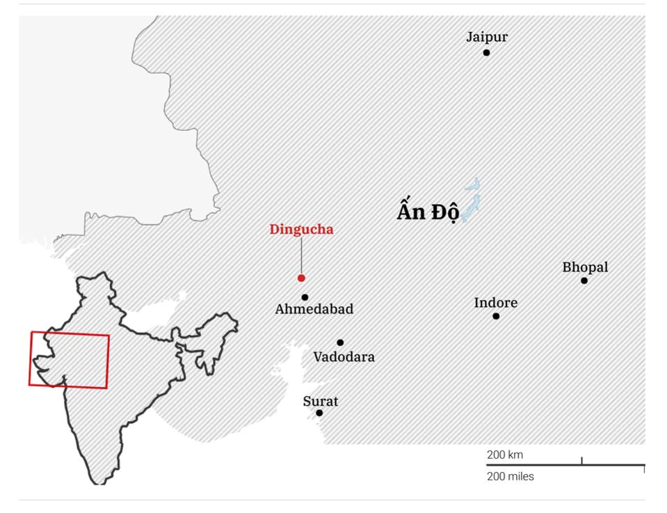 Bản đồ vị trí làng Dingucha, Ấn Độ, quê hương của Jagdish Patel. Ảnh: The Guardian.