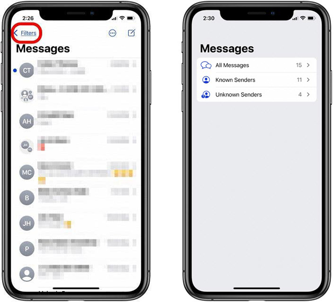 Giờ đây, người dùng có thể chọn mở ứng dụng Messages của mình với danh mục đã chọn trước đấy. Chẳng hạn, nếu không muốn Messages hiển thị các tin nhắn từ số lạ không có trong danh bạ của mình, hãy chọn Known Senders.