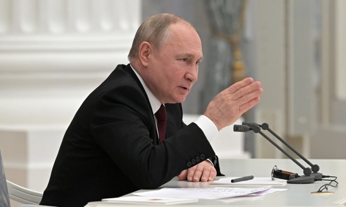 Tổng thống Putin trong cuộc họp Hội đồng An ninh Nga hôm 21/2. Ảnh: Reuters.