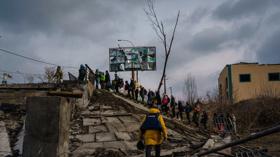 Dân thường sơ tán khỏi vùng ngoại ô Kiev, Ukraine (ảnh: RT)