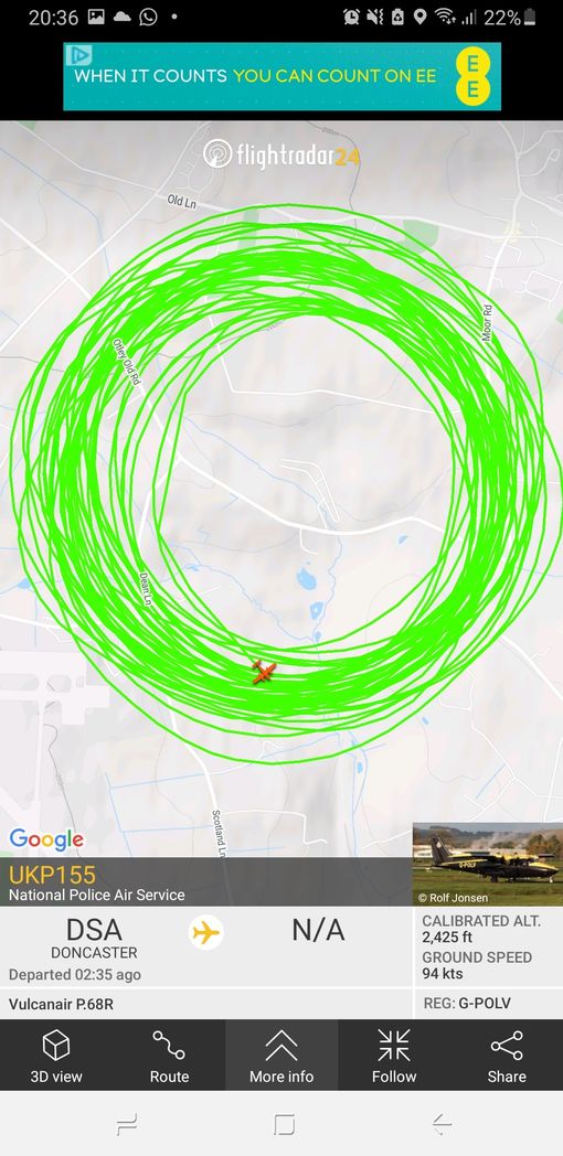 Một máy bay từ Lực lượng Cảnh sát Quốc gia cất cánh từ phi trường Doncaster lúc 6 giờ chiều và bay vòng vòng gần sân bay Leeds suốt khoảng thời gian đó. Radar máy bay đã ghi nhận hành trình bay vòng tròn của máy bay này xung quanh West Leeds.