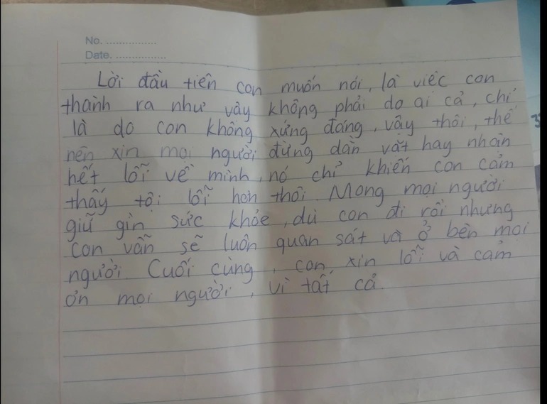 Ghi nhận của Pháp luật & Bạn đọc, nam sinh để lại thư tuyệt mệnh trước khi hành động dại dột.