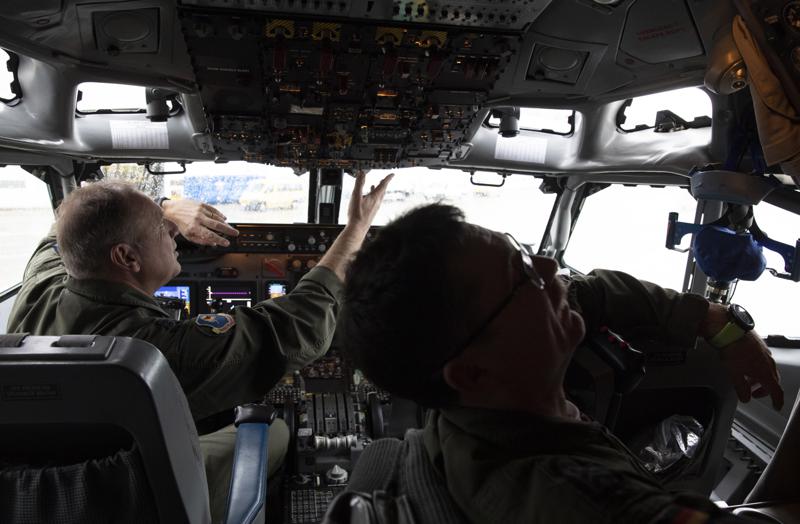 Các phi công làm việc trong buồng lái của một máy bay giám sát của NATO tại sân bay quân sự Melsbroek ở Melsbroek, Bỉ ngày 27/11/2019.