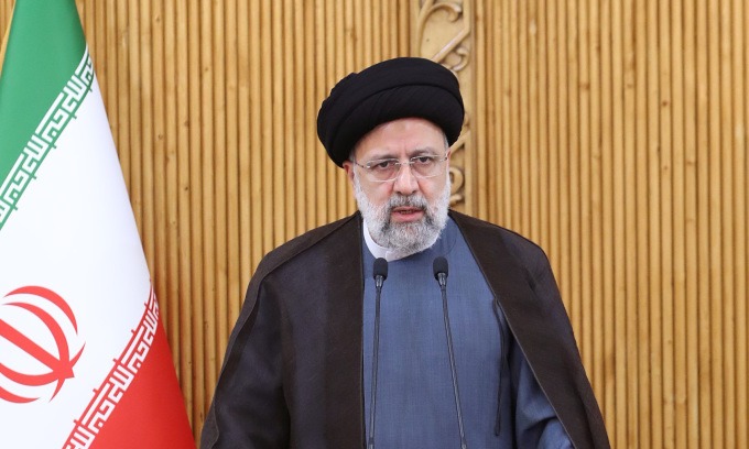 Tổng thống Raisi phát biểu tại thủ đô Tehran trước khi đến Oman hôm 23/5. Ảnh: AFP.