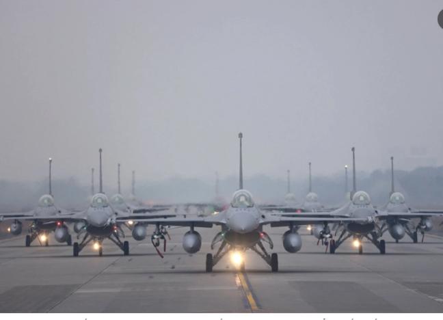 Tiêm kích F-16 do Mỹ chế tạo tại Gia Nghĩa, Đài Loan. Trung Quốc luôn coi Đài Loan là lãnh thổ chờ thống nhất và không loại trừ khả năng dùng vũ lực. Ảnh: Reuters.
