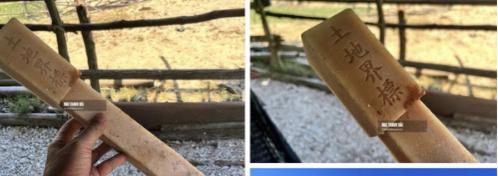 Theo đó, sáng 23-6, tài khoản Facebook M.T.H đưa thông tin khi ghé bán đảo Đầm Môn (xã Vạn Thạnh) thấy vật thể lạ, cao khoảng 40cm, làm bằng nhựa đặc, giống cái cọc tiêu, 4 mặt và trên đỉnh cọc khắc chữ Trung Quốc "Thổ địa giới tiêu".