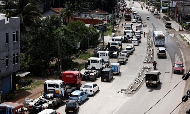 Dòng xe xếp hàng chờ mua nhiên liệu ở thủ đô Colombo, Sri Lanka, ngày 23/6. Ảnh: Reuters.