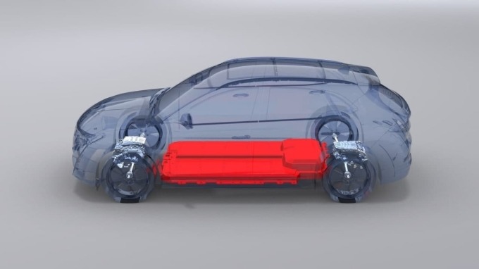 Bộ pin (màu đỏ) trên một mẫu xe điện VinFast. Ảnh: VinFast.