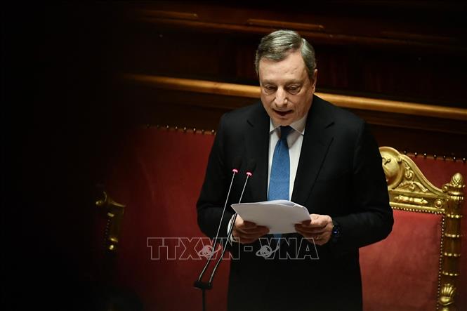 Thủ tướng Italy Mario Draghi phát biểu tại một phiên họp của Thượng viện ở Rome. Ảnh tư liệu: AFP