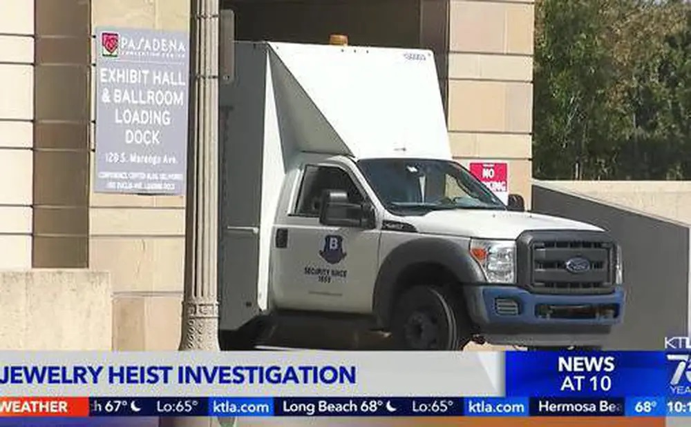 Hàng chục triệu USD trang sức và đá quý của các nhà trưng bày tại một triển lãm ở bang Califorina – Mỹ đã bị cướp vào tuần rồi. Ảnh: KTLA