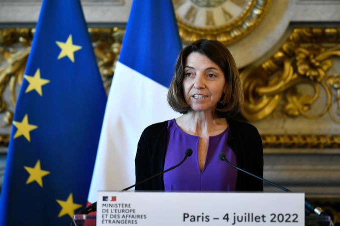 Bộ trưởng Các vấn đề châu Âu Laurence Boone của Pháp phát biểu tại Paris, thủ đô Pháp, ngày 4/7. Ảnh: AFP.