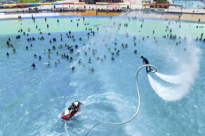 Người dân tránh nóng tại một công viên nước ở thành phố Liên Vân Cảng, tỉnh Giang Tô, Trung Quốc ngày 24/7. Ảnh: AFP.