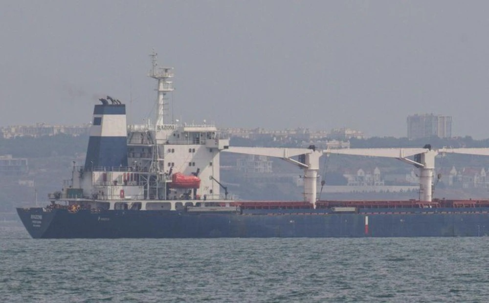 Tàu Razoni mang cờ Sierra Leone đã rời cảng Odessa chở theo 27.000 tấn ngũ cốc . Tàu dự kiến sẽ thả neo ngoài khơi Thổ Nhĩ Kỳ vào ngày 2/8 để kiểm tra, sau đó lên đường đến Lebanon.