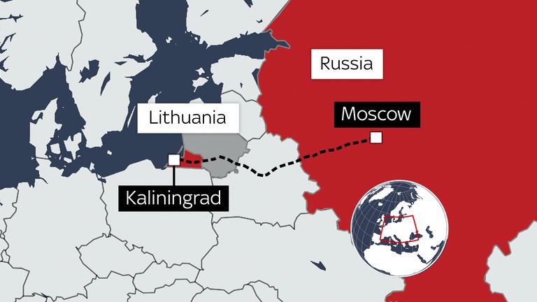 Kaliningrad là vùng lãnh thổ thuộc Nga nằm kẹp giữa Ba Lan và Lithuania – 2 nước thành viên NATO. Kaliningrad nhận hàng hóa từ Nga vận chuyển bằng các tuyến đường sắt, đường bộ qua lãnh thổ Lithuania.