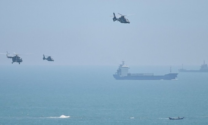 Các tàu và máy bay Trung Quốc tham gia tập trận gần đảo Đài Loan ngày 4/8. Ảnh: AFP.