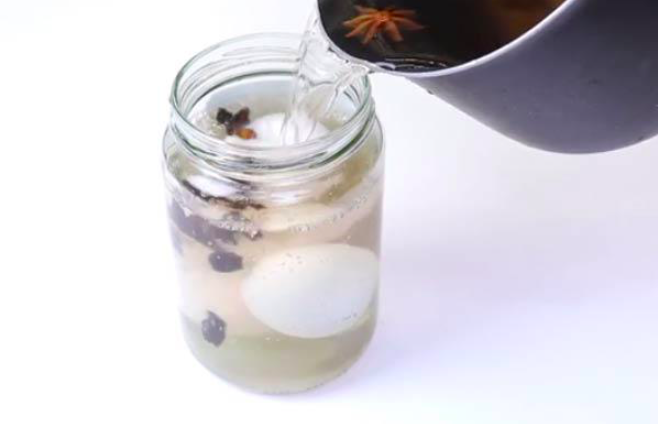 Xếp trứng vào bình và đổ nước ngâm vào. Lưu ý, trứng phải ngập hoàn toàn trong nước.