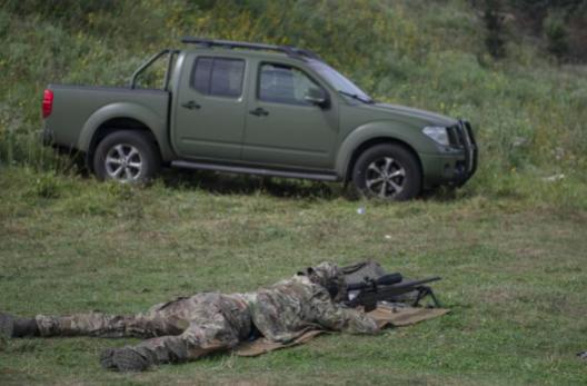 Nhờ có vốn tiếng Anh tốt, người lính bắn tỉa có thể trò chuyện với phóng viên hãng tin AP khi đang luyện tập một mình tại một trường bắn gần Kiev trước đợt triển khai tiếp theo.