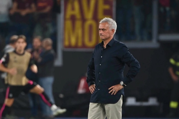 Mourinho không hài lòng trong trận Roma thắng Helsinki ngày 15/9. Ảnh: asroma.it