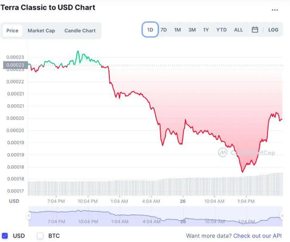 Đồng LUNC (Terra Classic) mất giá hơn 10% trong vòng 24 giờ qua, xuống còn 0,000204USD. Cú sụp này của Terra Classic. Khiến nó đứng top đầu trong số những đồng coin mất giá mạnh nhất kể từ hôm qua.