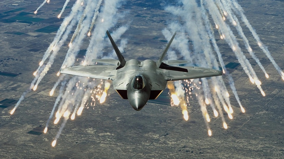 Một tiêm kích của Không quân Mỹ bắn pháo sáng. Ảnh: Không quân Mỹ.