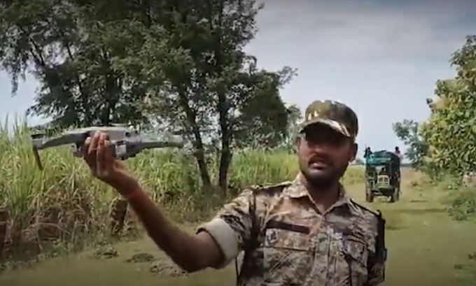 Cảnh sát Ấn Độ triển khai máy bay không người lái cỡ nhỏ để truy lùng con hổ tại khu bảo tồn Valmiki ở Champaran, bang Bihar ngày 8/10. Ảnh: Times of India.