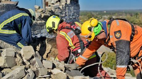 Nhân viên cứu hộ Ukraine tại nơi làm việc. Ảnh RT