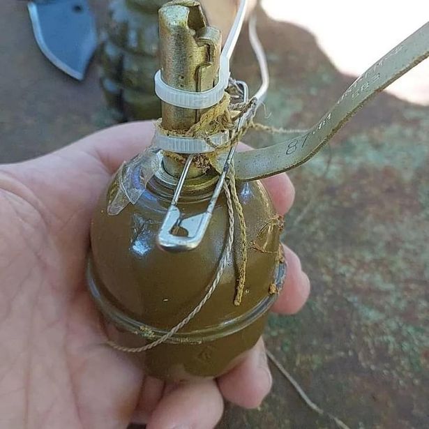 Trong bức ảnh đầu tiên, có thể thấy những quả lựu đạn nằm trong một tổ ong và được bao phủ bởi một lớp dính, gắn vào một số sợi dây. Bức thứ hai cho thấy một người nào đó đang cầm một quả lựu đạn cũng được bao bọc ở phần đầu.