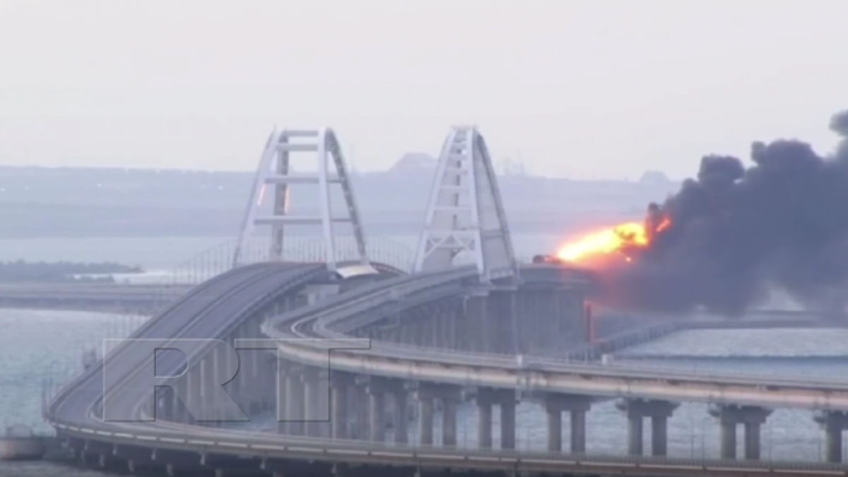 Cầu Crimea bị đánh bom sáng 8/10. Ảnh: RT